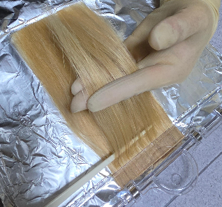 시험에서는 염색약을 아래에서 위 방향으로 도포하는 것이 기본입니다.