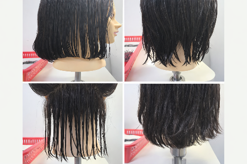 그라데이션 커트를 연습할 때 가장 중요했던 부분은 각도를 끝까지 똑같이 유지하는 것이었습니다.